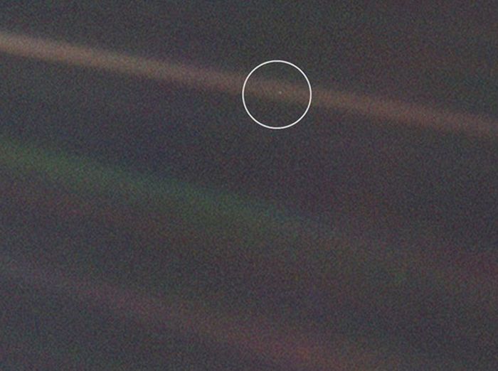 Pale Blue Dot - o poză unică compusă din 60 de imagini pe care Voyager 1 le-a captat când și-a întors camerele spre Pământ, înainte de a și le închide.