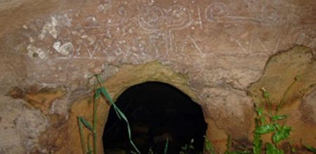 Chaco Canyon, SUA, intrarea dinspre sud, 900 d. Hr.; raza soarelui pe spirala indică solstițiul de vară