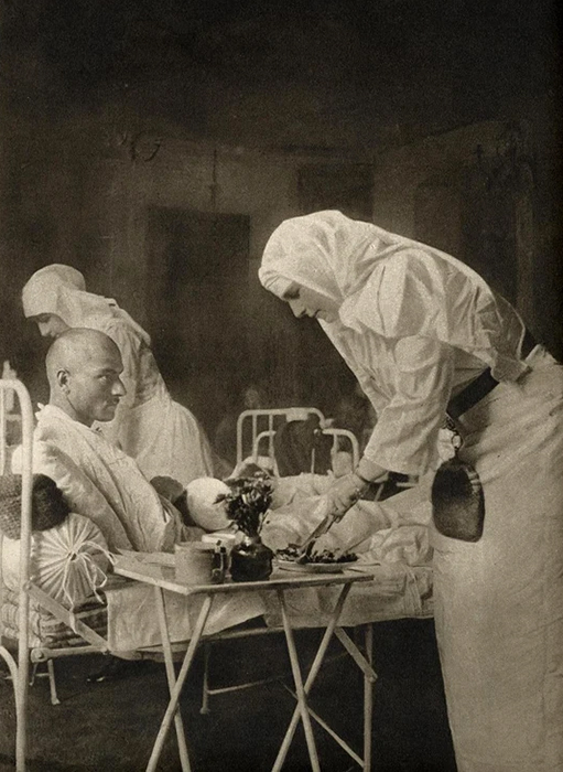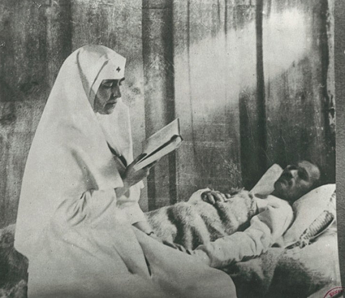 Regina Maria în spital, alături de răniţi. Credit: historia.ro