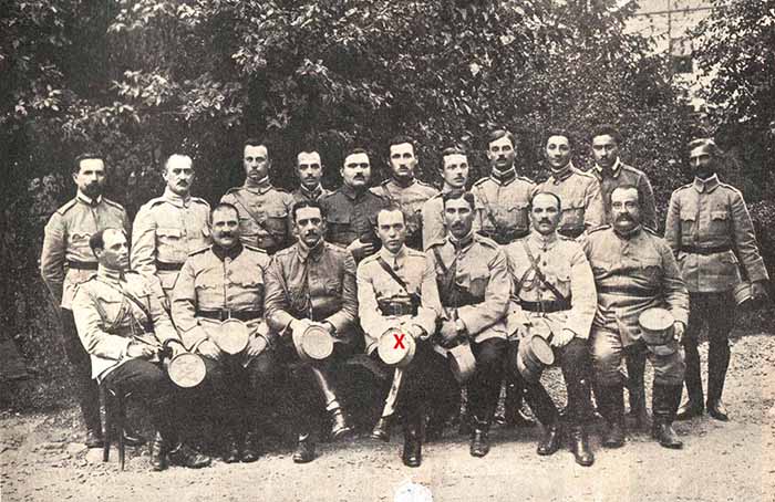 Ofițerii Secției Operațiuni din cadrul Marelui Cartier General al Armatei române - 1918. Marcat cu X apare lt.col. Ion Antonescu. Credit: ro.wikipedia.org