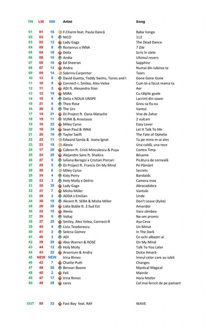 Radio România Actualitați Emisiuni Top 50 RRA Top 50 RRA, ediția 419 Top 50 RRA, ediția 419 Top 50 RRA, ediția 419, din 20-21.12.2025. Articol de Bogdan Pavlică, 22 Decembrie 2025, 13:05 Share pe Facebook Share pe Whatsapp Etichete : top 50 rra