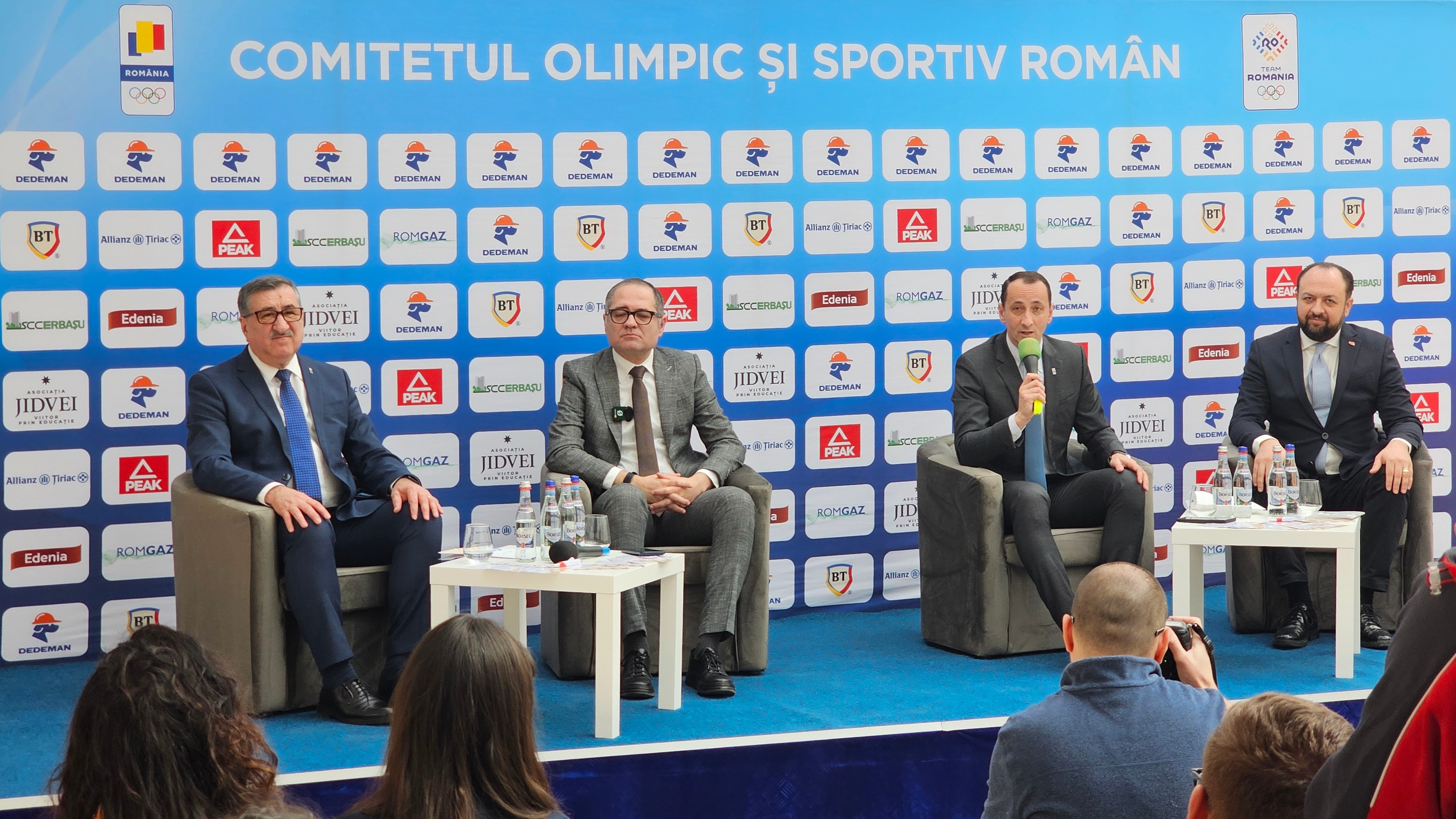 Foto 1/6 : Reprezentanții COSR, ANS, Romfilatelia și Poșta Română s-au reunit, pentru a marca participarea României la Jocurile Olimpice de iarnă 2026 Foto: Gabi Bucur
