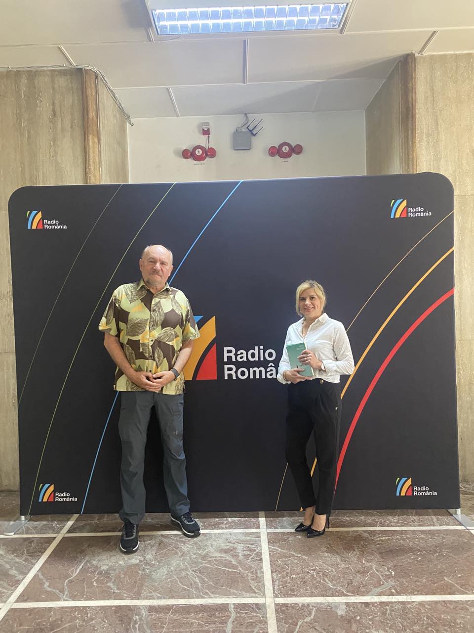 : Medicul scriitor Adrian Sângeorzan, în studioul emisiunii Românii de pretutindeni, alături de realizatoarea emisiunii, Luminița Voinea. Foto: Radio România