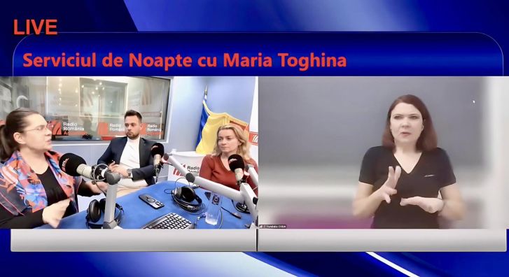Foto 1/2 : Serviciul de noapte cu Maria Țoghină, prima emisiune radio accesibilizată în limba semnelor române. Foto: Marius Țoghină (foto și transmisie video)
