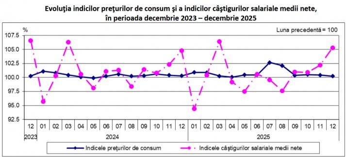 Câștigul salarial mediu net a ajuns la 5.914 lei în decembrie 2025, în creștere față de luna anterioară.