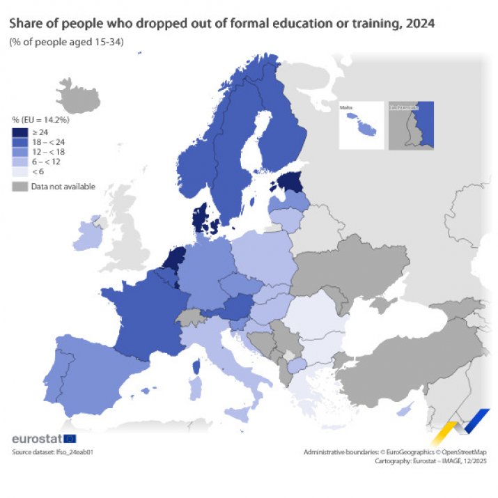 Anul trecut, peste 14% din tinerii europeni între 15 și 34 de ani părăsiseră sistemul de educație formală cel puțin o dată.
