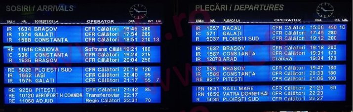 Dacă accesați camera web de la Gara de Nord din București, veți vedea atât la Plecări, cât și la Sosiri întârzieri ale curselor, chiar și de peste șase ore.