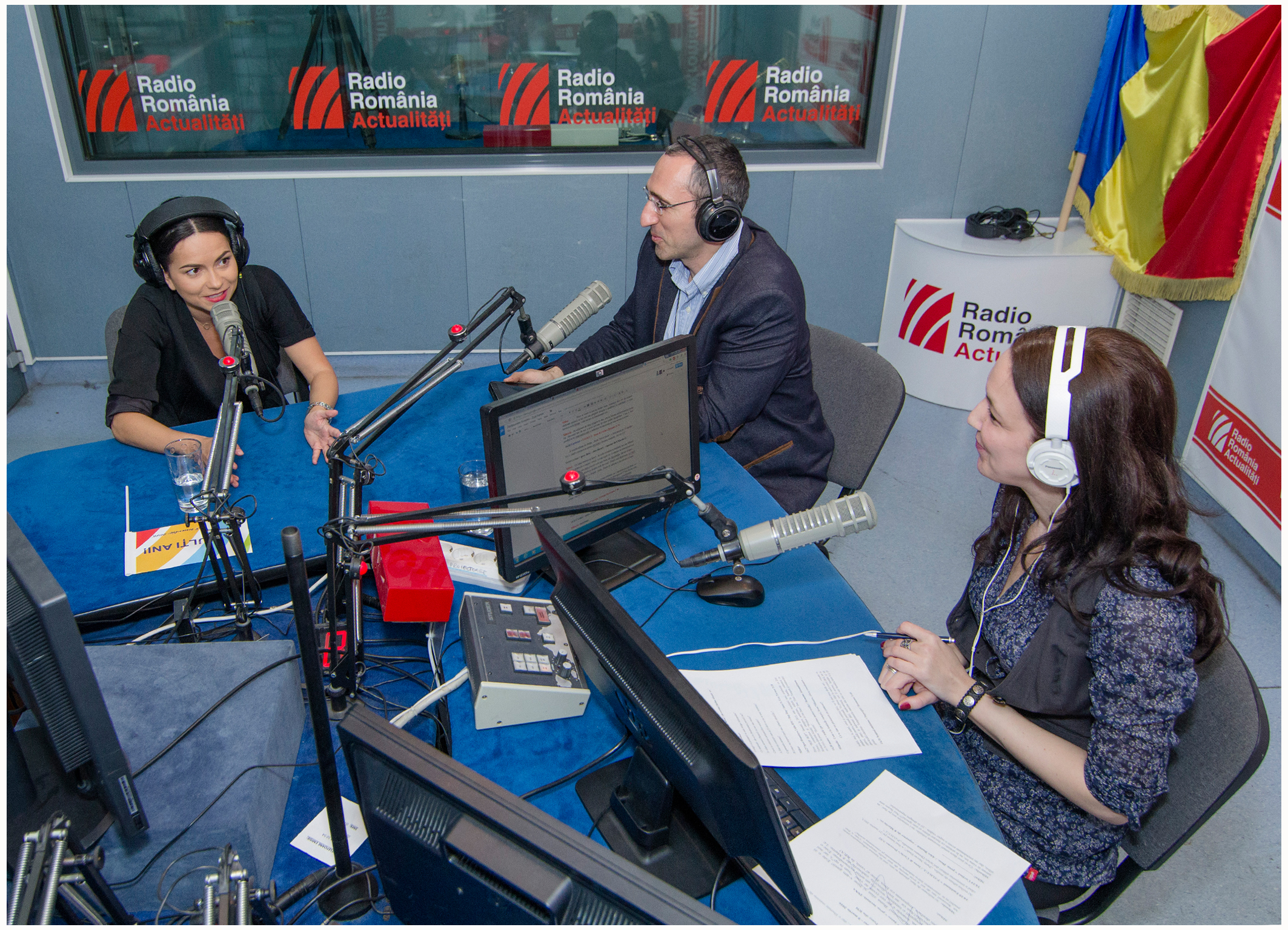 INNA (în stânga) în studioul Radio România Actualități. Foto: Alexandru "Ciumpi" Dolea.