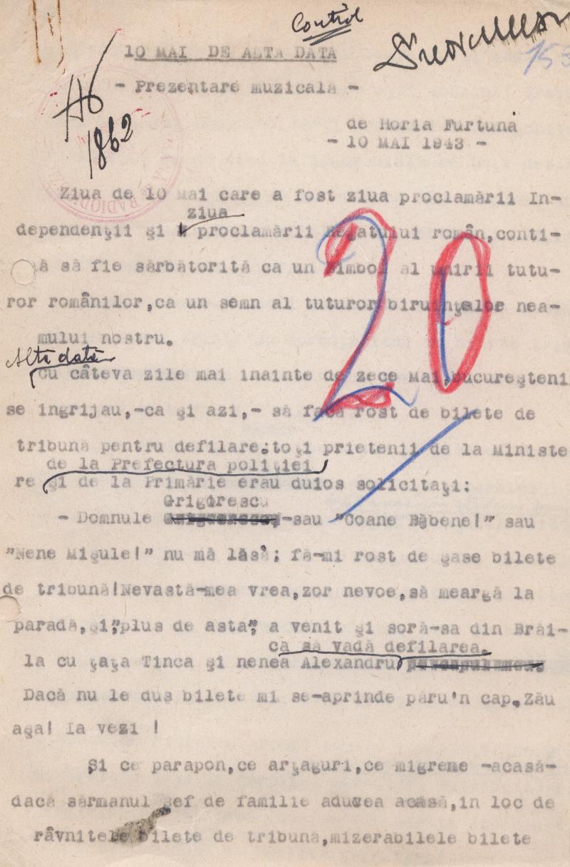 "Răsfăţaţii soartei trebuiau să-şi ocupe locurile în tribună până la ora 10 şi jumătate. Parada se făcea în faţa statuii lui Mihai Viteazul iar publicul venea pe străzile Brătianu şi Colţei.