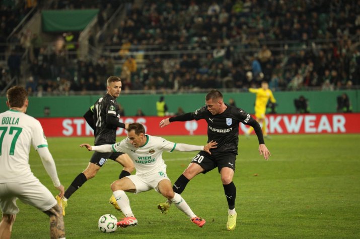 🔃 Min 61: Triplă modificare efectuată de antrenorul echipei Rapid Viena. Intră Furkan Demir, Romeo Amane, Janis Antiste și ies Tobias Gulliksen, Lukas Grgić și Jonas Auer.