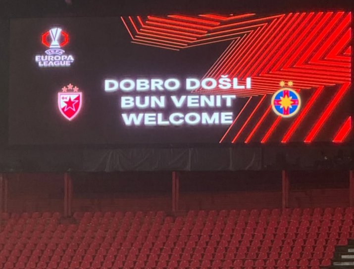 Delegația celor de la FCSB a fost întâmpinată la stadionul din Belgrad cu un mesaj în limba română.