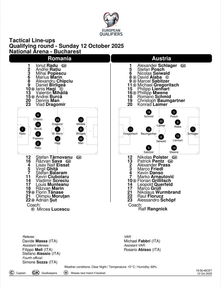 România – Austria, Grupa H din Preliminariile Cupei Mondiale din 2026. Virgil Ghiță a marcat în prelungiri.