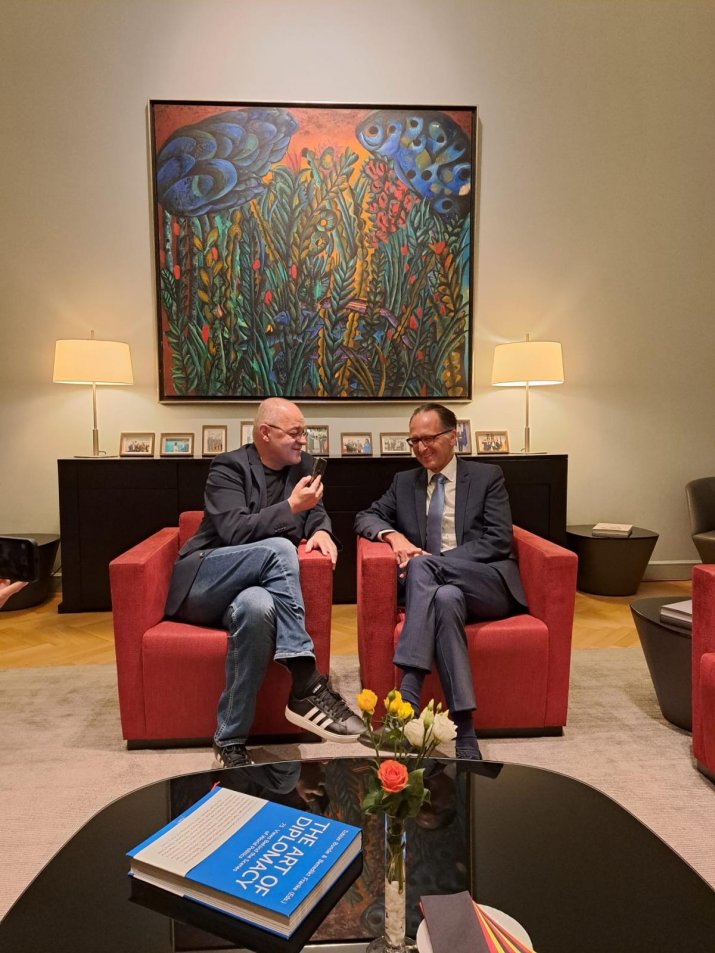 Cum România și Germania sunt țări în care fotbalul bate în popularitate orice alt sport, o dată cu sosirea lui Ciprian Marica la recepție s-a ajuns și la sportul rege: “E greu de ales în această săptămână - astă seară, mein Stuttgart joacă cu PSG în Champions, iar mâine vine Manchester United la București. Dar seara asta este despre rugby și despre promovarea acestui sport ale cărui valori morale sunt excepționale”, a concluzionat ambasadorul german în România.