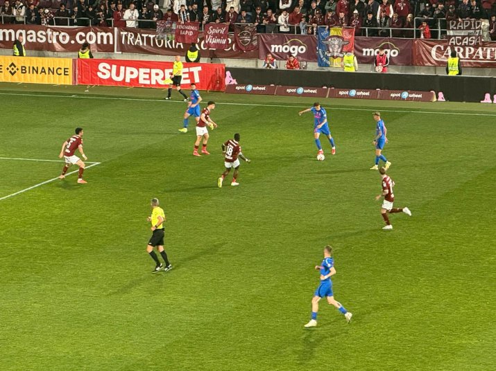 Min. 15 - încercare timidă de atac a Rapidului pe partea dreaptă, dar echipa vizitatoare se apără foarte bine