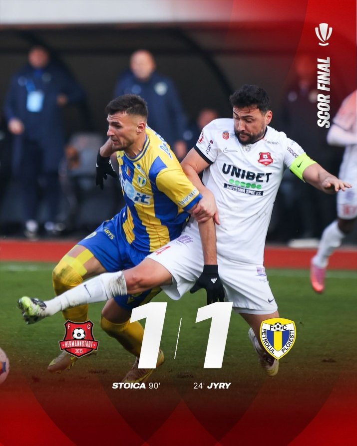 FC Hermannstadt a ajuns la 11 meciuri consecutive fără victorie, cu trei egaluri şi opt înfrângeri, în timp ce Petrolul Ploiești scoate un punct la Sibiu, după două eşecuri consecutive.