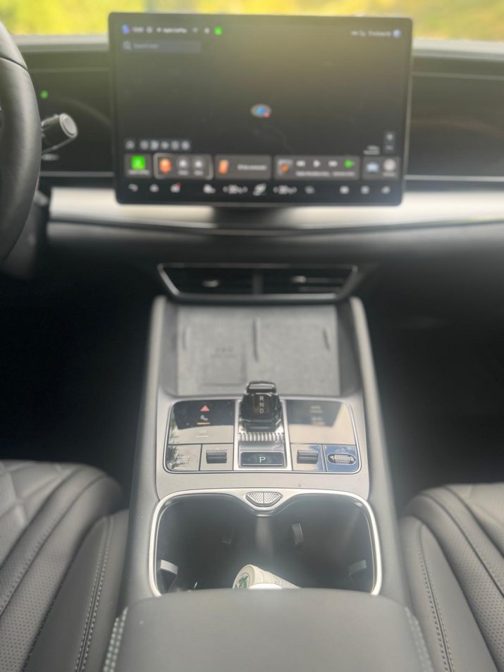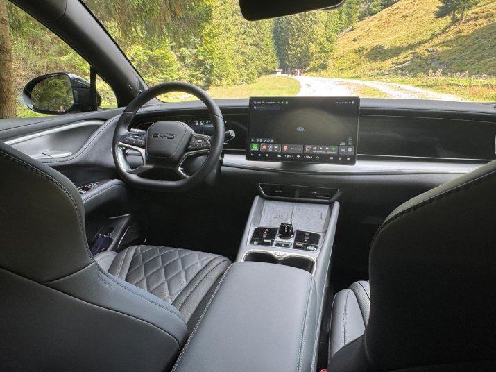 Confortul se înscrie în registrul premium. Volan și scaune încălzite, dar fără funcția de masaj, iar chinezilor le plac atât de mult culorile, încât interiorul poate fi luminat de mai multe nuanțe, totul în funcție de preferințe. Puțin plastic, materiale de calitate, dar mult spațiu pentru pasageri. Trei adulți pot călători pe distanțe lungi în condiiții de confort.